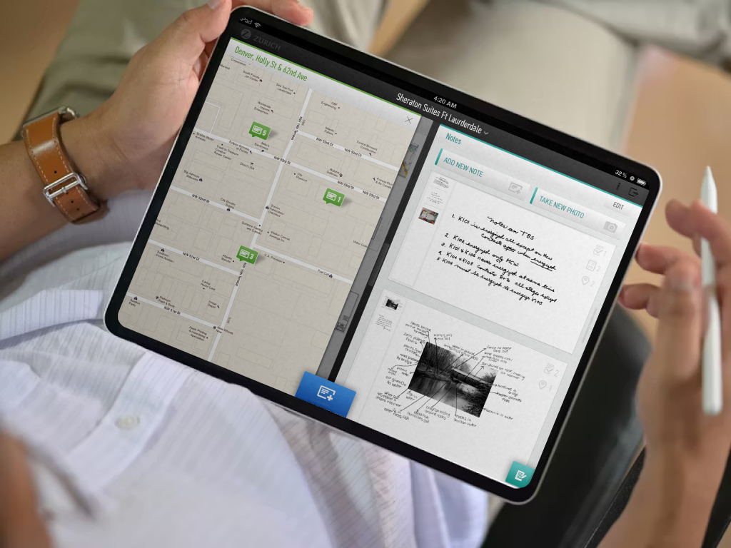 Directed UX for an enterprise iPad system for a Fortune Global 500 insurer used by 1,300+ field engineers, consolidating fragmented risk workflows into a unified platform that reduced reporting time by four days.